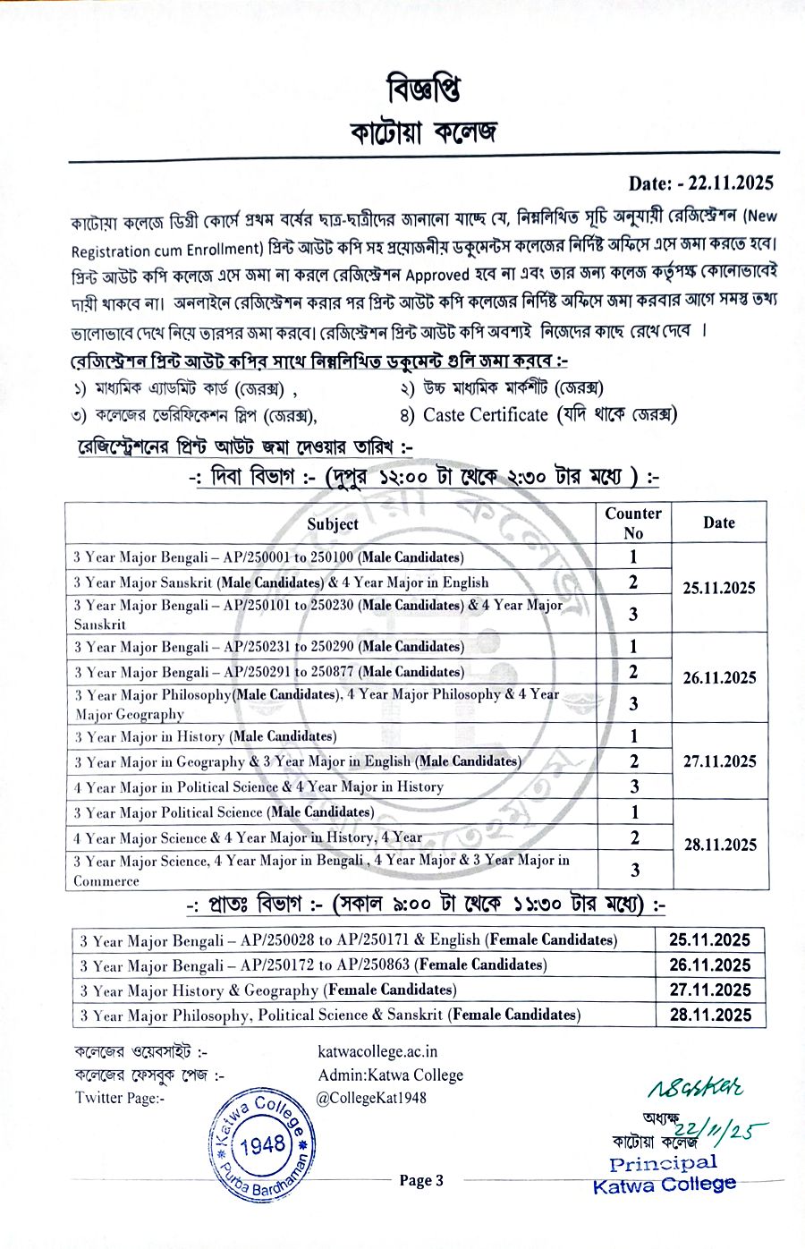 | 23 | Notice for new registration cum enrollment 2025 | 22/11/2025 | general & admission |